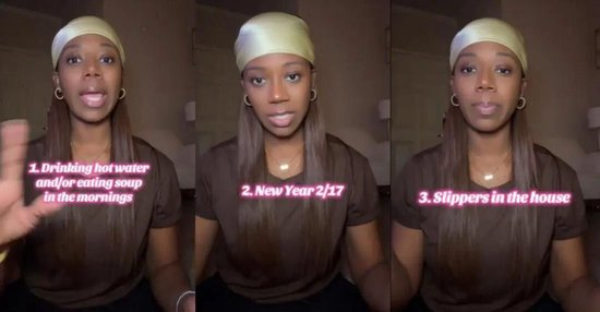 Sherry后續(xù)以幽默而權(quán)威的口吻列出“中國人守則”:在家必須穿拖鞋、不能喝冰水、早上要喝粥……意外引爆了一場全球性的“中式生活方式”模仿秀。
