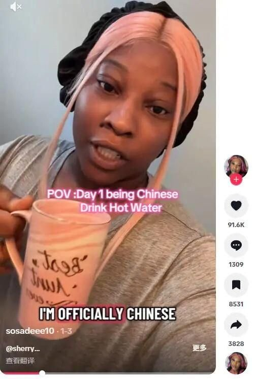 華裔博主們自信地分享日常,博主Sherry 在視頻中那句霸氣又親切的“沒必要反抗,這是你的命運”,以一種幽默俏皮的方式消解了文化隔閡,讓“中國化”變成了一種被接納的全球社區(qū)活動,一杯熱水就能讓被地理區(qū)隔的人們找尋到歸屬和鏈接。