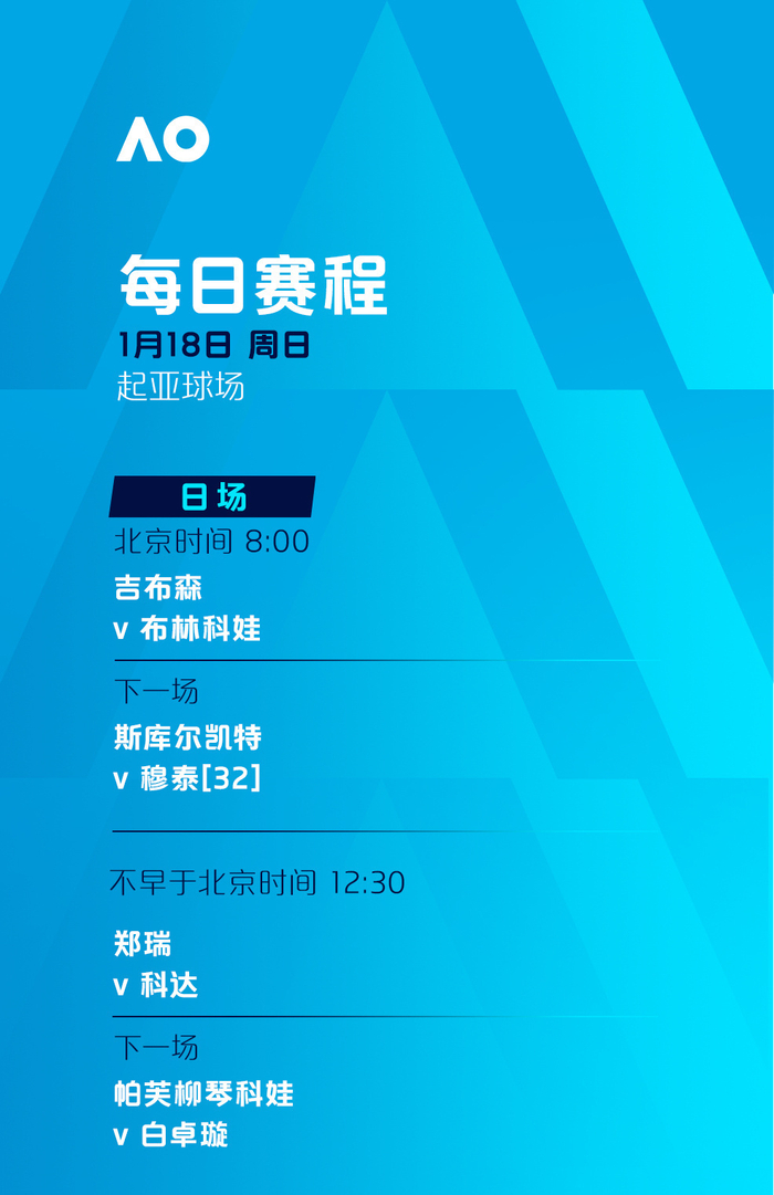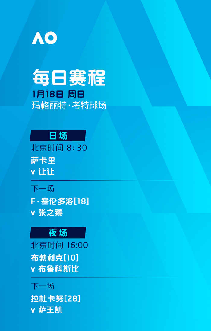 2026年澳大利亞網球公開賽正賽今日正式開打,澳網賽事將于1月18日至2月1日在墨爾本公園舉行。正賽中國戰期